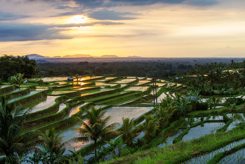–  Las terrazas de arrozales de Jatiluwih, el color verde intenso de los arrozales rodeado por palmeras te dejarán sin aliento. Los paisajes traen una historia llena de tradición y oficios que por siglos fueron transmitidos de generación en generación.